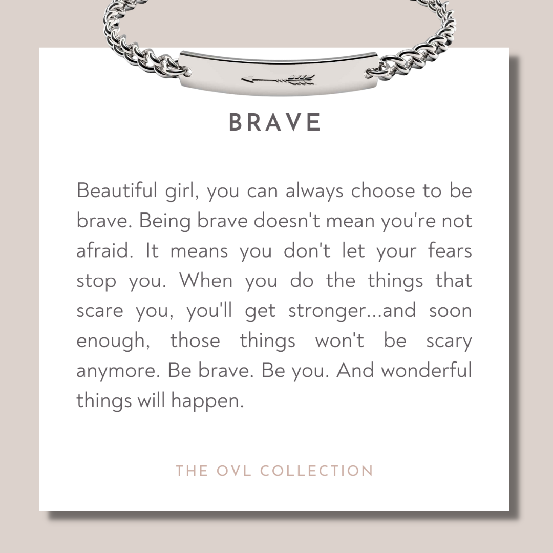 Help young girls celebrate courage and confidence with our Brave Bracelet—a stunning piece of girls' jewelry designed to inspire bravery. This elegant bracelet is engraved with the word "Brave," making it the perfect gift for young girls and daughters who embody strength and spirit. Crafted with high-quality materials, this meaningful piece is ideal for everyday wear or special occasions. Empower the little ones in your life with a timeless accessory that symbolizes their inner courage.