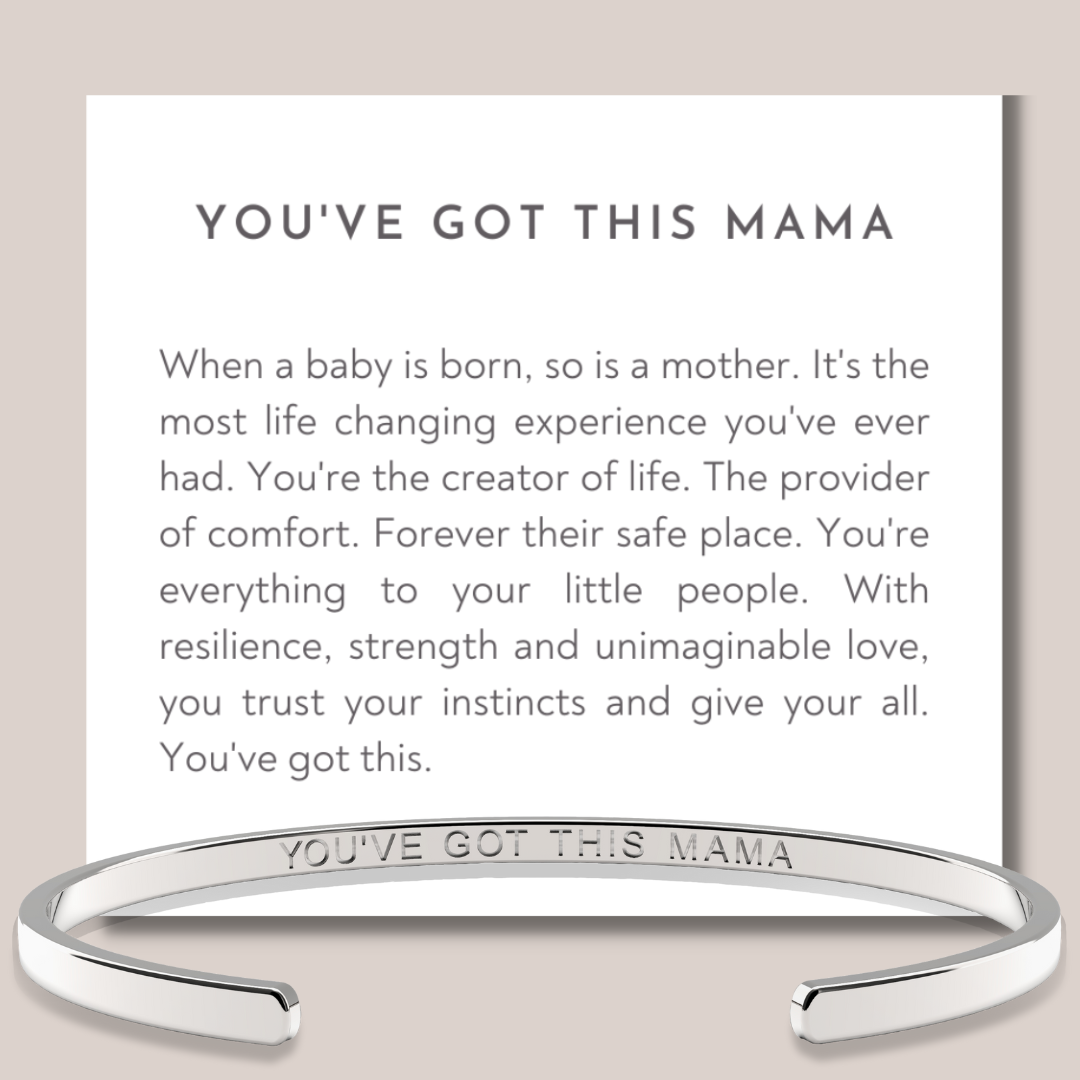 For the beautiful mamas of this world - the women who do it all and give their all. The "You've Got This Mama" Bracelet is the perfect motivational jewelry gift for mothers, designed to uplift and inspire. This elegant bracelet serves as a daily reminder of a mother's strength, resilience, and endless love. Ideal for celebrating motherhood, it encourages confidence and perseverance, making it a thoughtful and meaningful gift. This bracelet is not just a piece of jewelry but a symbol of empowerment and support for the strong moms in your life.