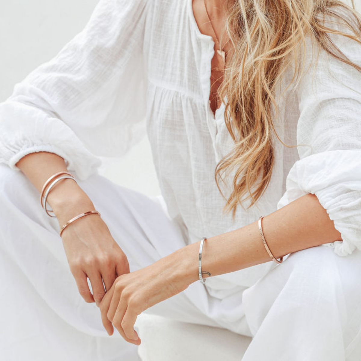 - Simply cup the bangle in the palm of one hand and gently squeeze closed, or expand for larger wrists by pulling each side gently outwards.
